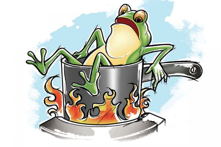 “Immaginate un pentolone pieno d’acqua fredda nel quale nuota tranquillamente una rana. Il fuoco è acceso sotto la pentola, l’acqua si riscalda pian piano. Presto diventa tiepida. La rana la trova piuttosto gradevole e continua a nuotare. La temperatura sale. Adesso l’acqua è calda. Un po’ più di quanto la rana non apprezzi. Si stancaContinua a leggere “La rana consapevole”